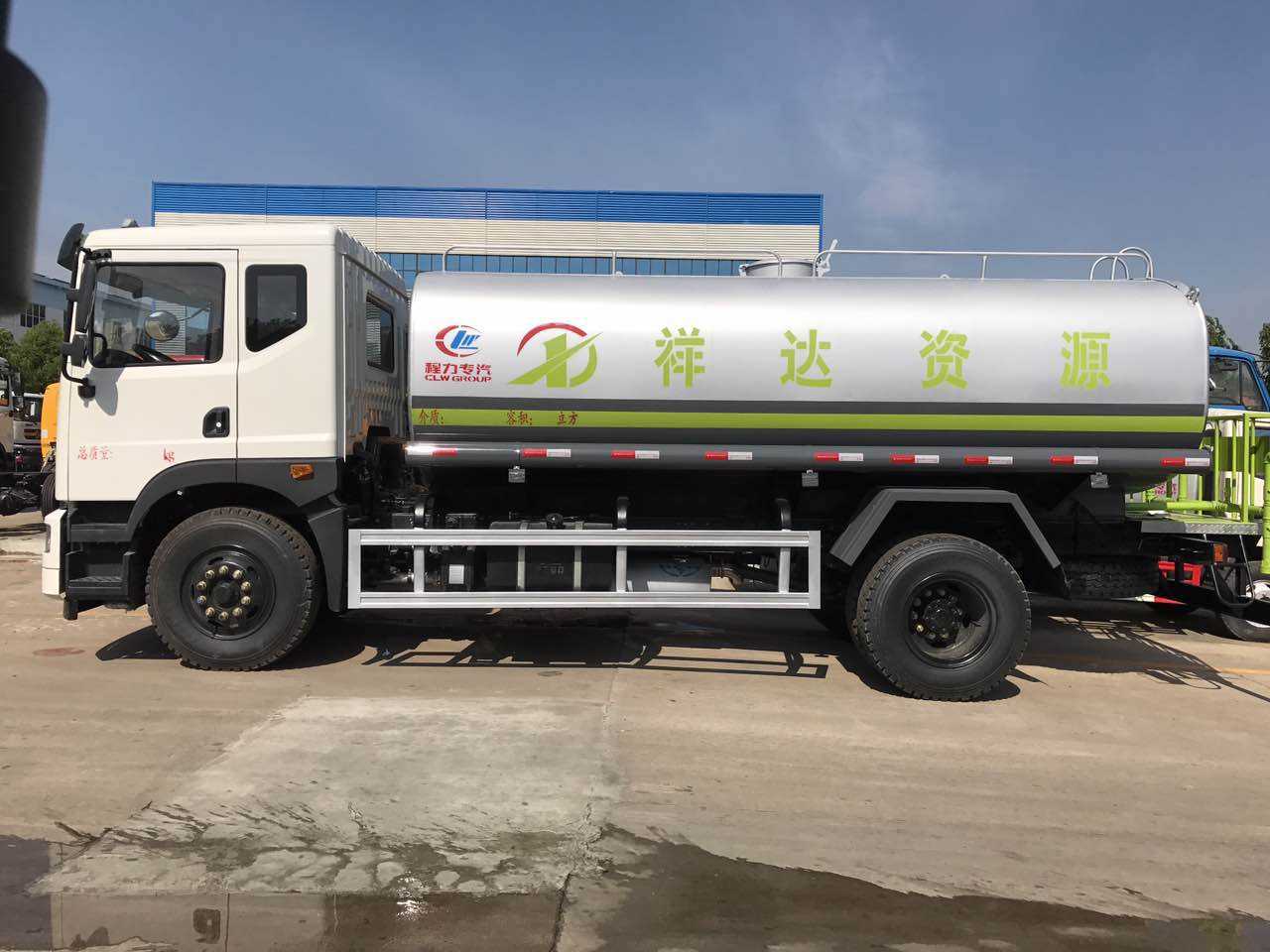 改裝配置:罐體采用4MM厚武鋼專用容積板制作,實(shí)際容積15立方,前沖后灑側(cè)噴,高位花灑,后工作平臺(tái)及綠化高炮,配專用水泵(泵進(jìn)泵出)及消防栓接口,兩根等長(zhǎng)輸水管,金屬漆,其余標(biāo)配。用戶可選裝消防大功率消防水泵、應(yīng)急時(shí)可做消防灑水車使用。