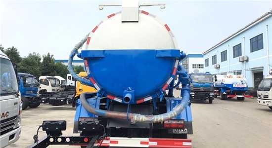 上裝配置:專用部分由取力器、傳動軸、真空吸污泵、壓力罐體、液壓部分,管網系統、真空壓力表、視糞窗、洗手裝置等組成,隨車配置大功率真空吸污泵和優質液壓系統,罐體封頭一次壓鑄成型、罐體可后開、雙頂自卸。罐內污物可通過后蓋直接傾倒,具有真空度高(比吸糞車的吸力更大)、噸位大、效率高、用途更廣泛等特點。油水分離器,水氣分離器,液壓自卸裝置,專用真空吸污泵,容積壓力表,吸物導管,自流閥,真空罐體,連通器(視糞窗),全自動防溢閥,液壓套件。采用國內技術領先的吸污專用泵,吸力大,吸程遠,特別適合用于市政環衛,廠區,礦山,小區等下水道內的淤積物的抽吸、裝運和排卸,尤其是可吸下水道泥漿、淤泥、石子、磚塊等較大物體、含水量較小等物質。抽滿污(糞)罐體時間:≤5min,吸程:≥10m。自吸自排,壽命長,工作速度快,運輸方便。吸污車與吸糞車具有相同原理,但吸污車又與吸糞車有著不同用途。區別就在于吸污車罐體為圓形罐,結構更緊密,可以耐更高壓力提供更大的吸力,可用于收集清理運輸污水,污泥。