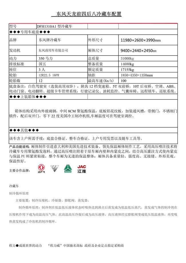 東風天龍前四后八冷藏車
