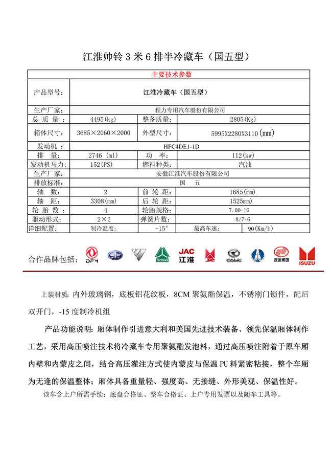 江淮帥鈴3米6排半冷藏車